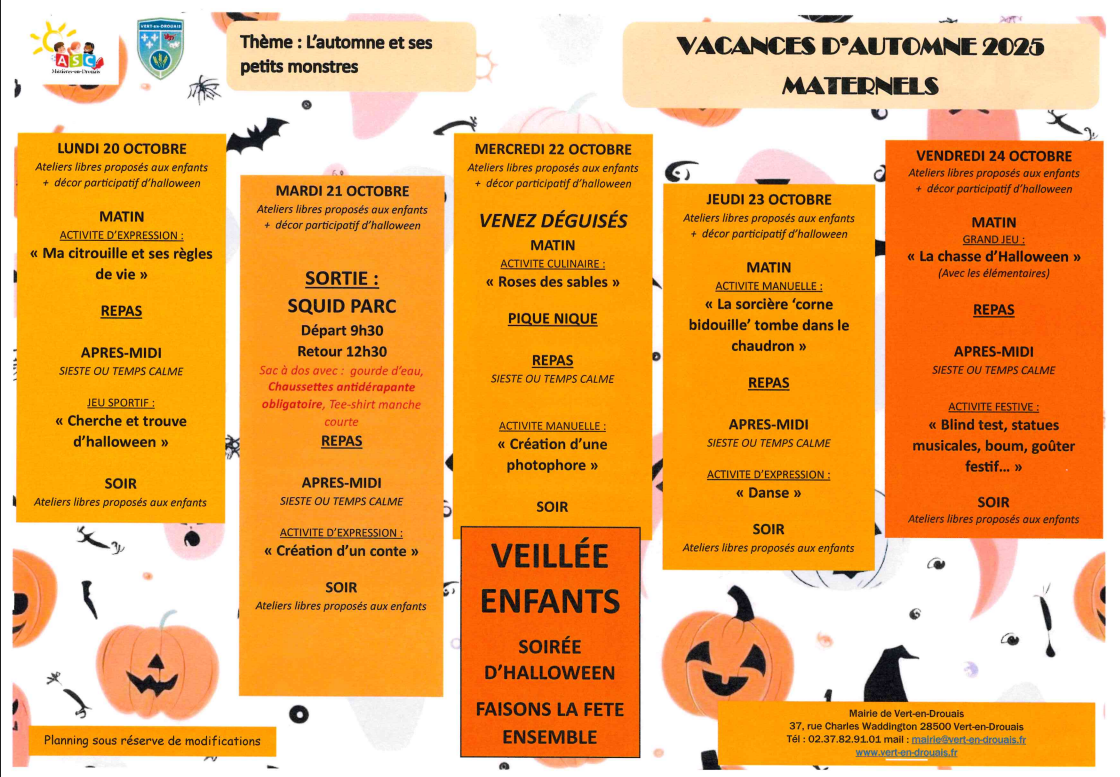 Accueil de loisirs L'accueil de loisirs est géré par la Mairie Tél. 02 37 82 91 01 VACANCES D'AUTOMNE Fiche inscription accueil loisirs vacances de la Toussaint Règlement et Tarifs Accueil Loisirs année 2025 - 2026