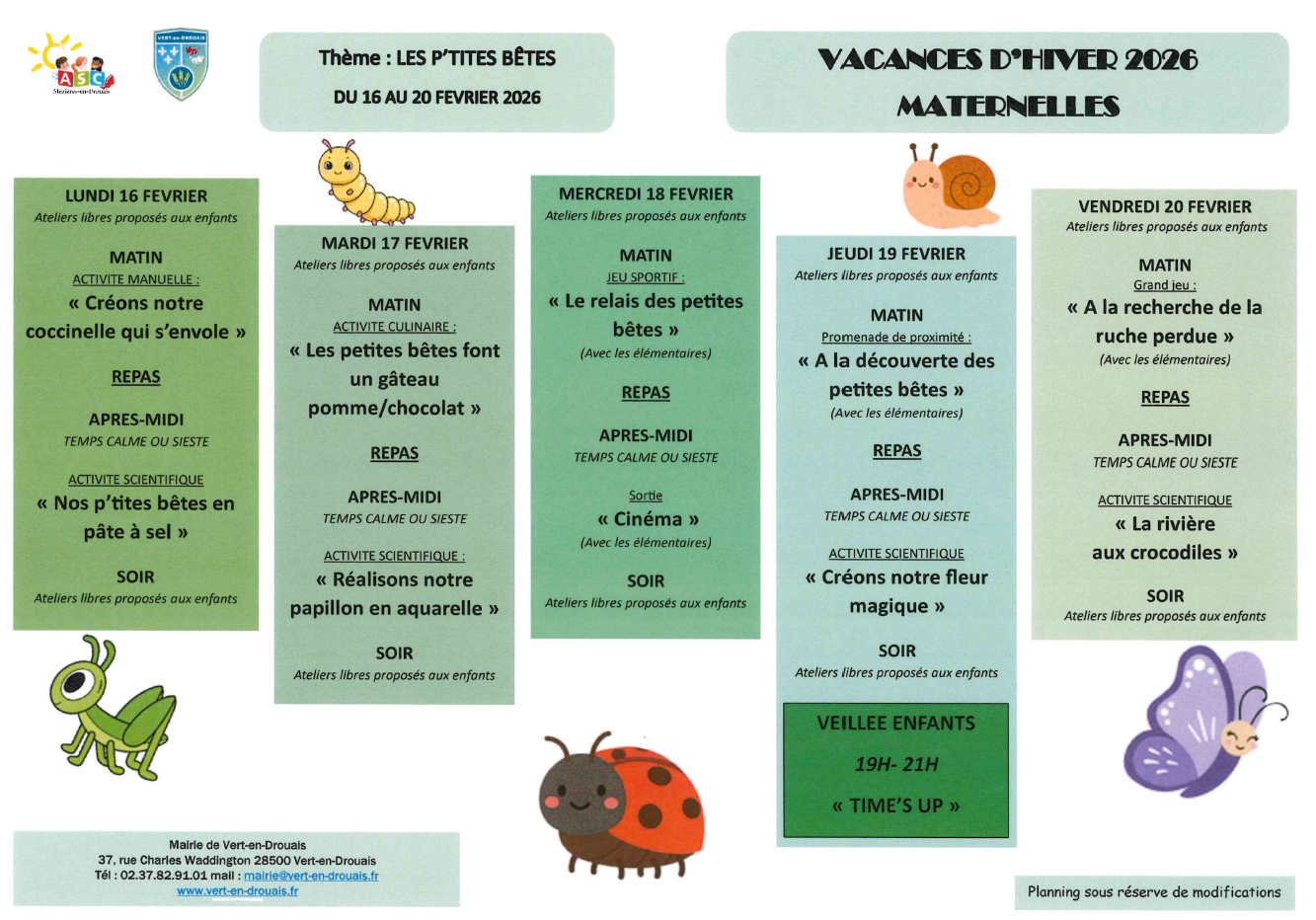 | Accueil de loisirs L'accueil de loisirs est géré par la Mairie Tél. 02 37 82 91 01 VACANCES D'HIVER Fiche d'inscription à l'Accueil Loisirs vacances d'hiver 2026Règlement et tarifs de l'Accueil Loisirs