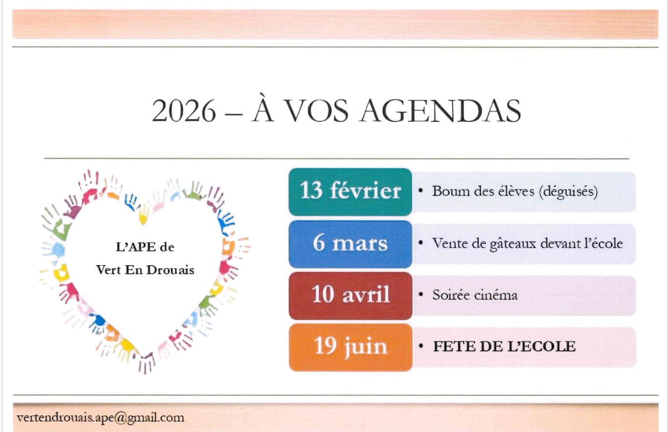 Et pour ne manquer aucun de nos évènements : page facebook APE vert en drouais